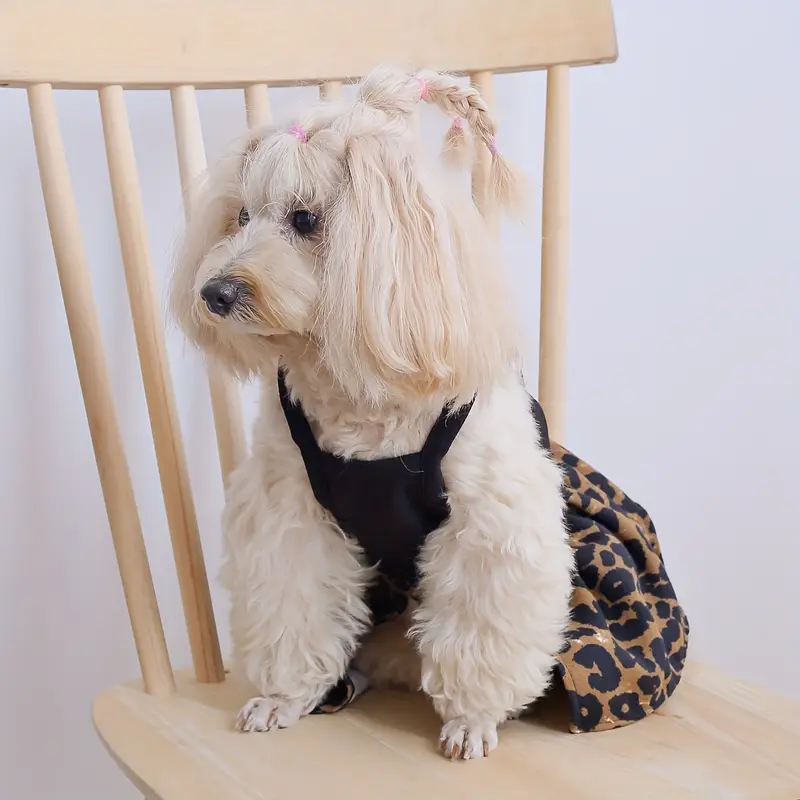 This is our leopard tutu dog dress, featuring a stylish leopard-print bodice, clean contrast binding, and a full black layered tulle skirt that makes the whole style look bold, trendy, and eye-catching for small dogs. We can customize the print pattern, dress color, skirt fullness, fabric texture, size range, and private label details based on your market needs.