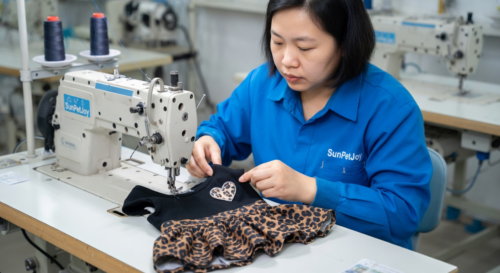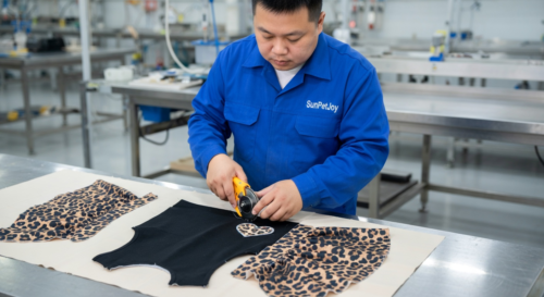 This is our expert sewing stage where our team precisely joins panels and attaches high collars on dog turtleneck sweaters, delivering durable construction and reliable uniformity across wholesale batches.