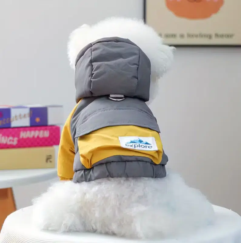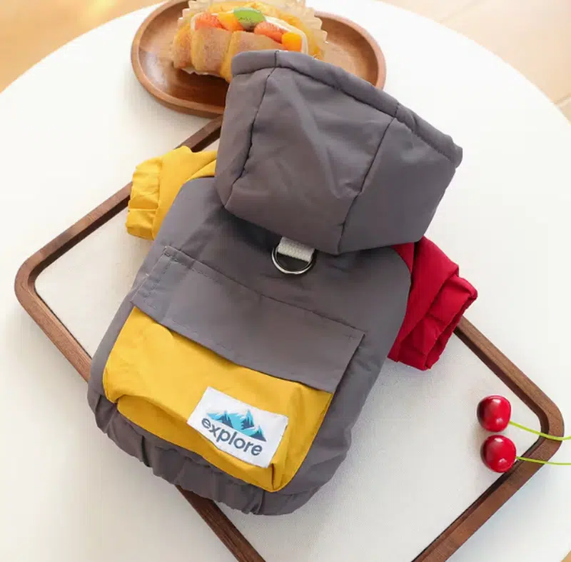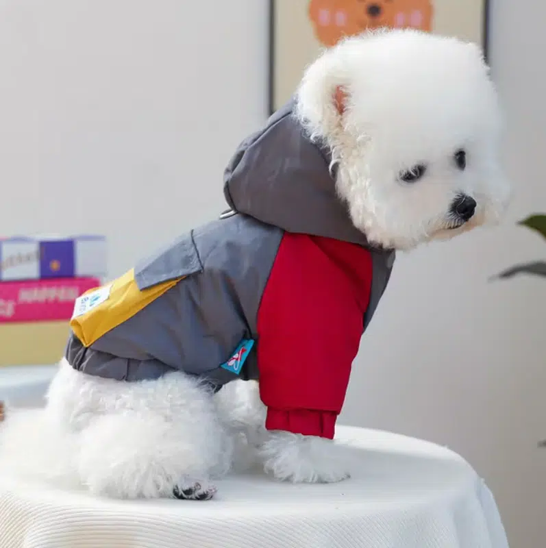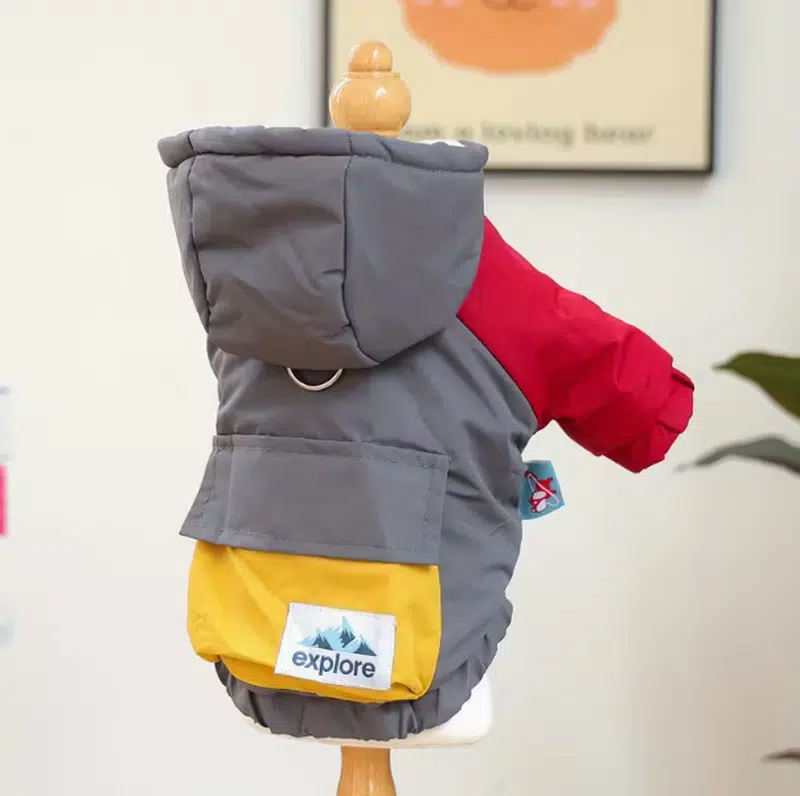 colorblock coat for small breeds, ideal for winter pet clothing lines, online sellers and