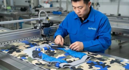 Industrial sewing machines assemble the camouflage spliced panels with attention to seam strength at leg openings and high-movement areas. The back traction ring is securely attached using reinforced stitching methods. Multiple quality control checkpoints occur during assembly to verify stitching integrity, zipper or closure function if present, and overall construction. Final inspection confirms appearance and functional performance before packaging. The process supports both standard cut-and-sew methods and flexible production adjustments to accommodate project-specific requirements. This approach delivers batch-to-batch reliability that helps businesses maintain supply chain stability and minimize quality-related losses.