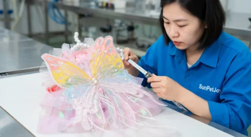 Below are real production step photos of our pink dog wedding dress. Each step is executed with strict quality control to ensure consistent quality for wholesale partners.