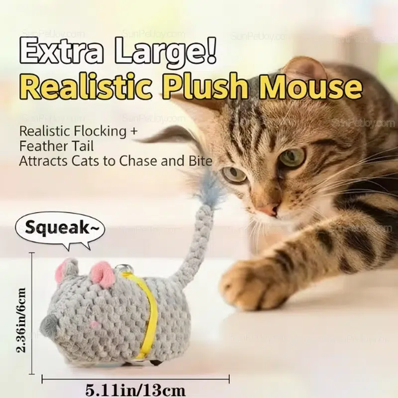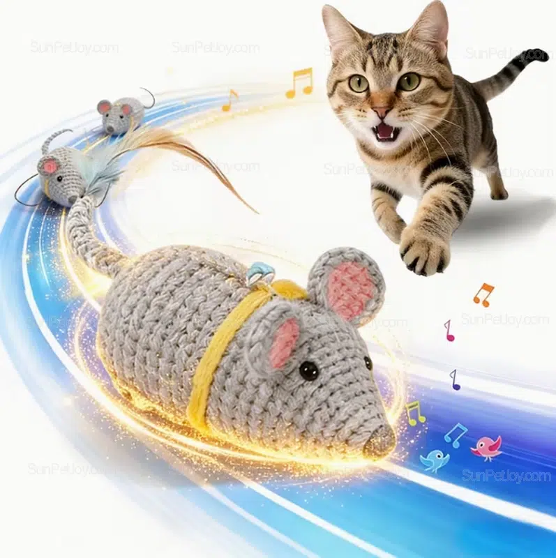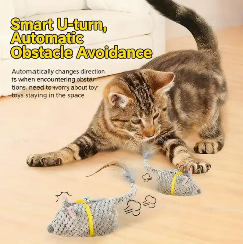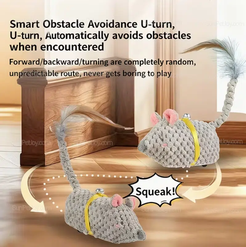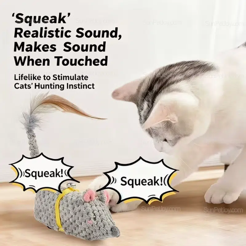 Unlike static plush toys, this automatic cat mouse toy reacts to touch, changes direction randomly, and emits realistic squeak sounds. The unpredictable movement pattern helps activate a cat’s natural hunting instinct, making it a strong option for enrichment-focused cat toy collections.