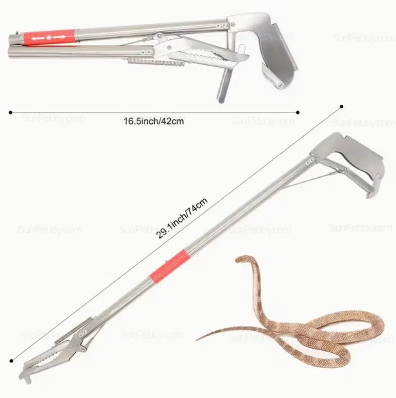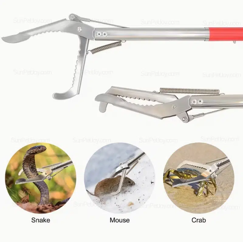 This stainless steel snakes catching tongs are engineered for safe and controlled handling of snakes in outdoor, farm, facility, and reptile management environments. Built with a reinforced serrated jaw and extended handle design, the tool allows operators to maintain a secure distance while handling live snakes or other small animals without unnecessary harm.