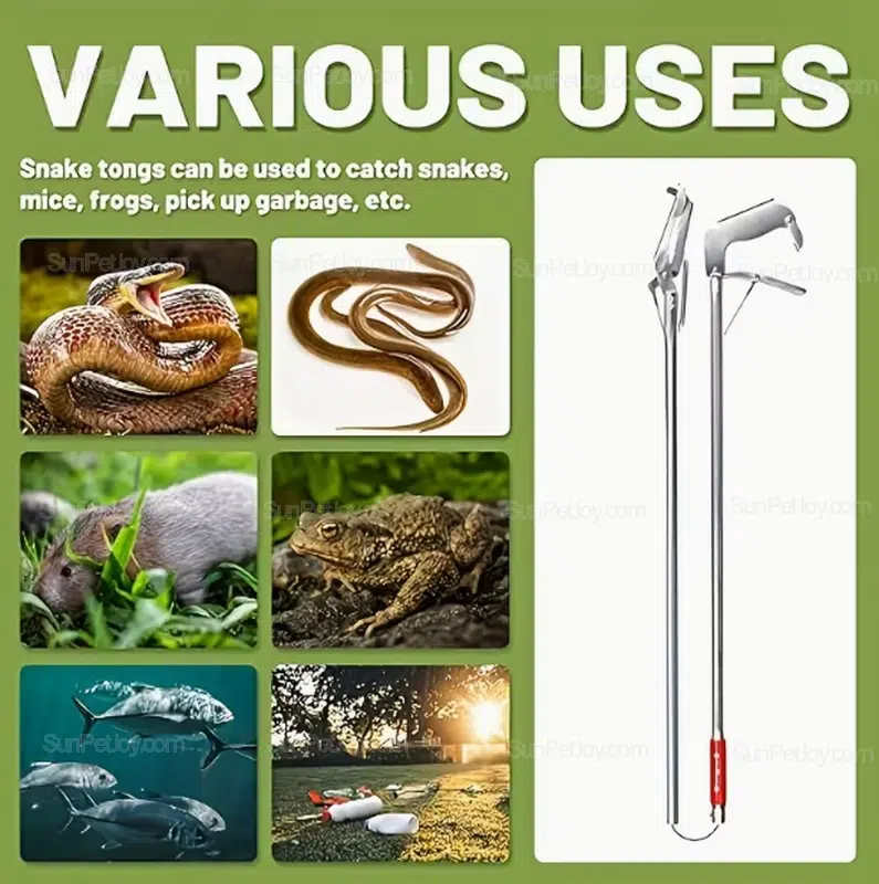 This snakes catching tong is suitable for handling a range of animals including non-venomous snakes, small to medium reptiles, eels, frogs, rodents, and similar wildlife species encountered in controlled environments. It is commonly applied in snake relocation, enclosure maintenance, breeding facility operations, and outdoor inspection tasks.