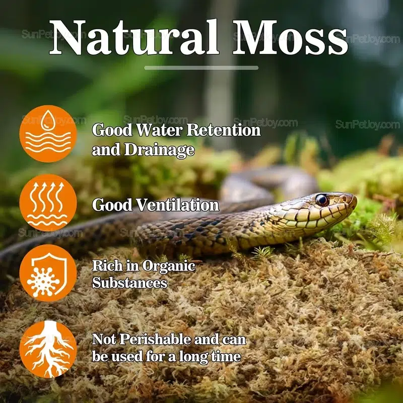 This natural sphagnum moss is specially prepared for snakes terrarium environments where stable humidity,