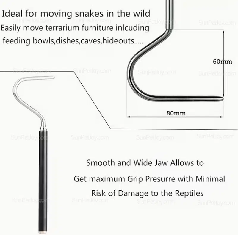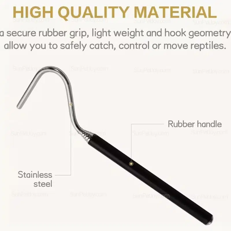 This telescopic snakes handling hook is designed for professional reptile operations where control, distance, and equipment reliability matter. Built with a stainless steel shaft and smooth curved hook geometry, it allows handlers to safely guide, lift, or reposition snakes during breeding, enclosure maintenance, transport, or wildlife handling tasks.