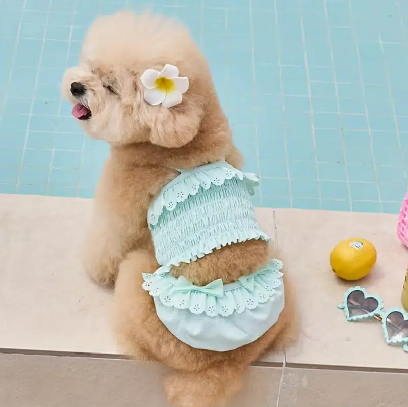 | Retail Hook | Ruffle look + pastel tone = strong photo appeal, easy seasonal “summer drop” story for cute dog swimwear collections |