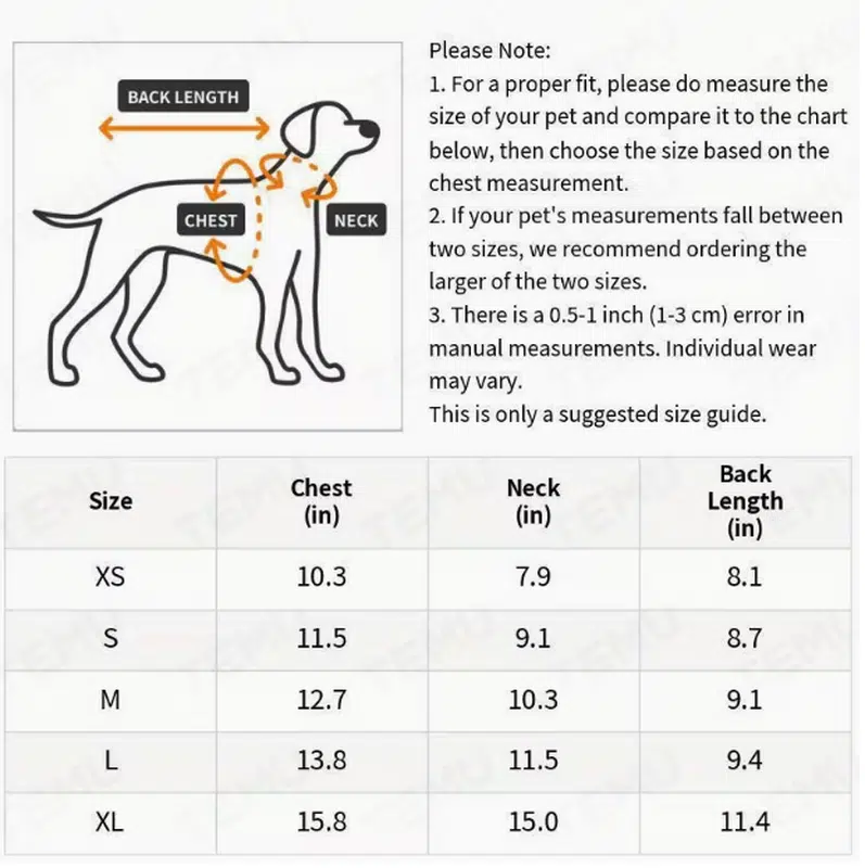 - Q1: How do I measure chest/neck/back length, and what if my dog is between two sizes?