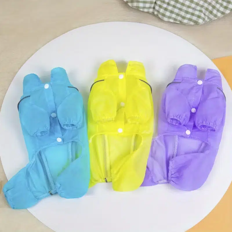 This lightweight four-leg dog jumpsuit is designed for summer protection, using breathable fabric that helps reduce mosquito