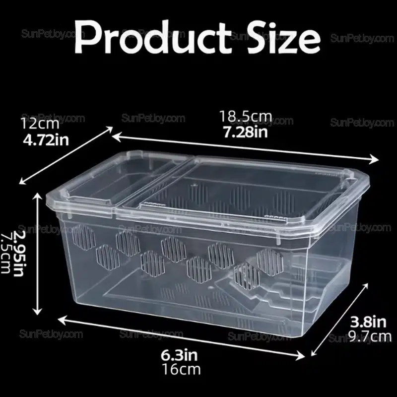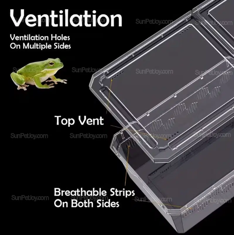This ventilated reptile breeding box set is designed for controlled breeding, temporary housing, and isolation of small reptiles and amphibians.