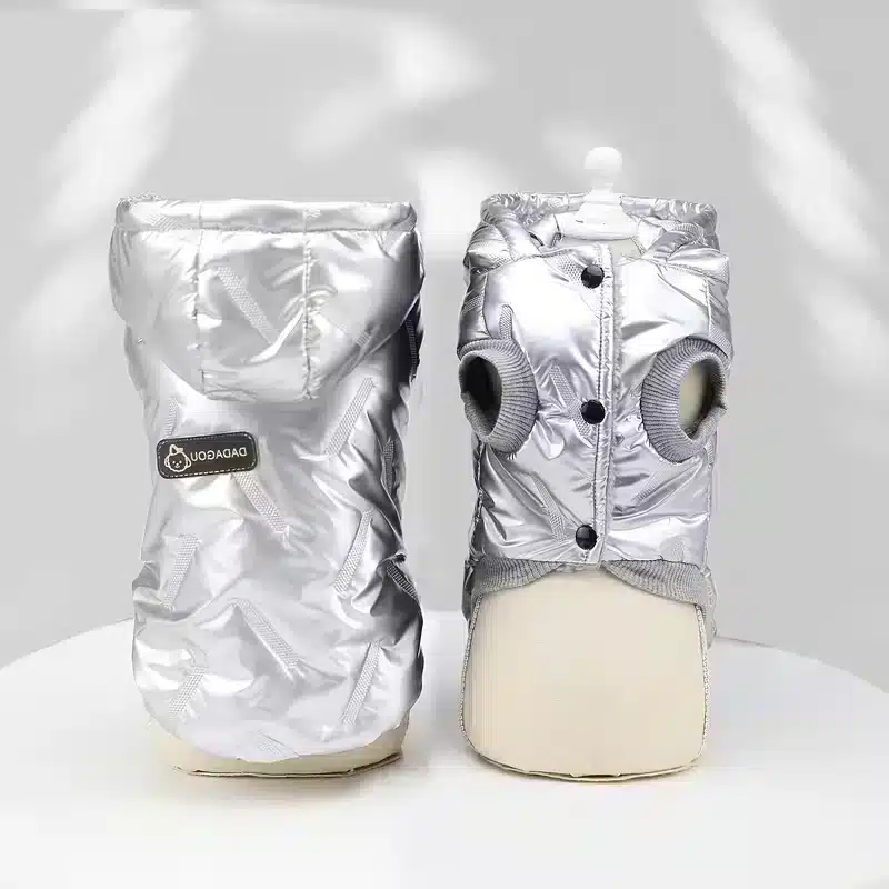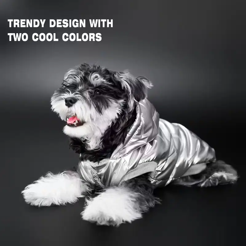 This waterproof dog puffer delivers a sleek glossy finish and dependable warmth for cold, wet days. The hood offers extra coverage against wind and light snow, while the padded body keeps warmth locked in without adding stiffness.