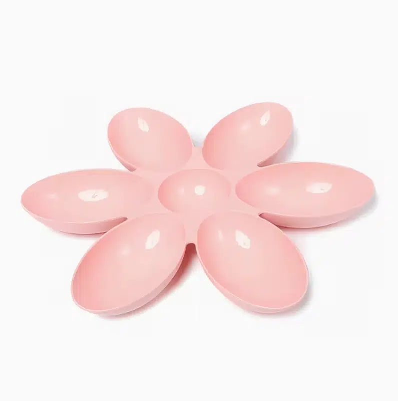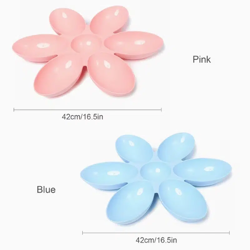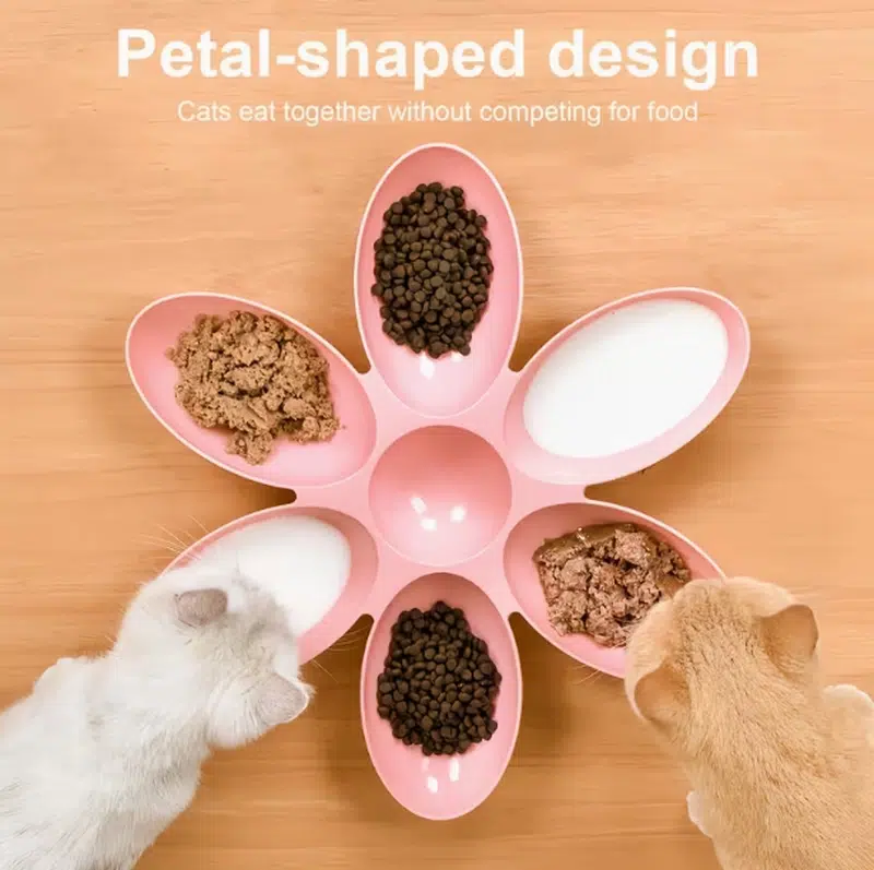 The 6-compartment petal cat feeding tray is designed for multi-cat feeding environments