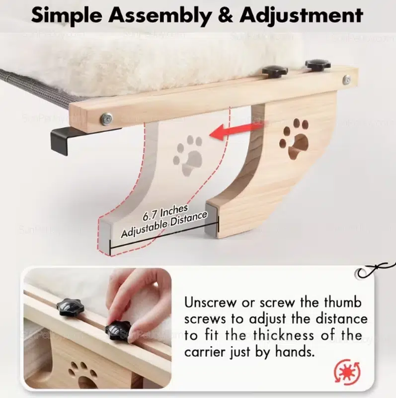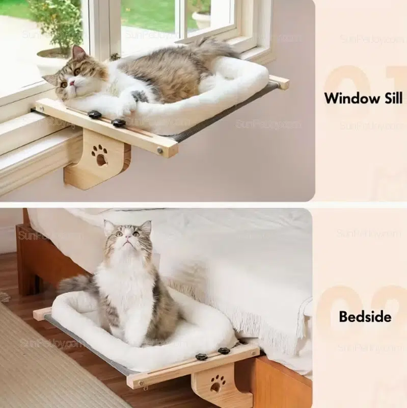 Discover the SUNPETJOY adjustable cat window perch, crafted for pet suppliers seeking reliable wholesale options. This sturdy wood frame hammock offers a cozy spot for indoor cats, blending functionality with charming paw print designs.