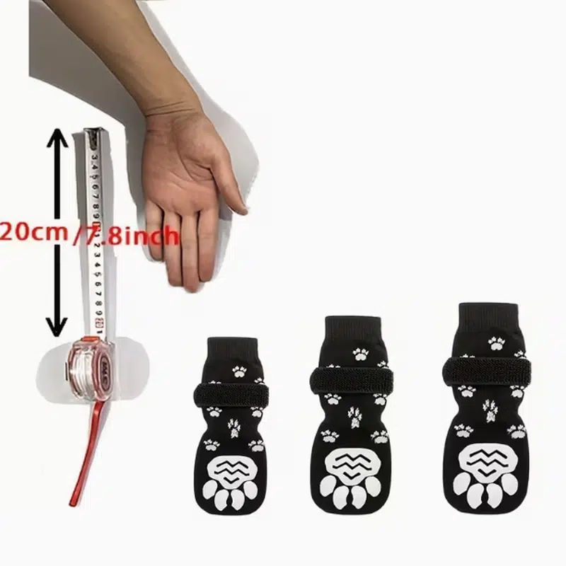The socks are made from breathable knit fabric with a reinforced rubber grip bottom to help pets stay steady indoors.