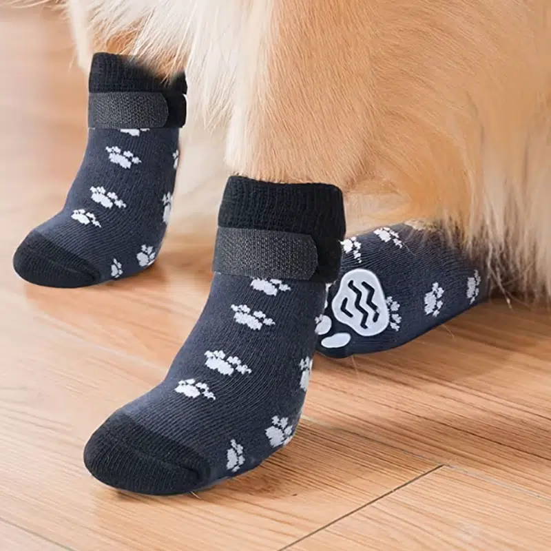 Wholesale Anti-Slip Dog Socks 4-Pack with Grip Soles & Adjustable Strap – OEM Pet Footwear