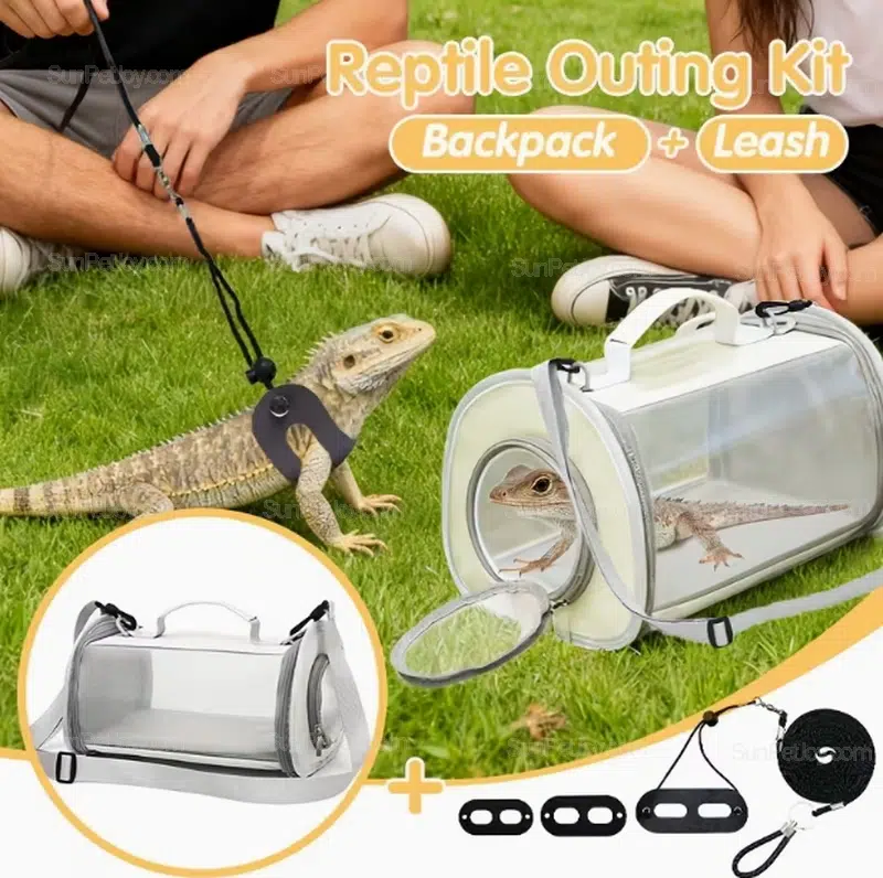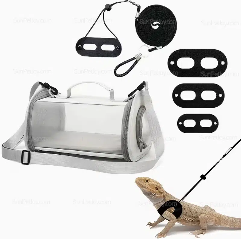 Discover our premium wholesale bearded dragon carrier backpack with leash, designed for safe and comfortable reptile transport. This multifunctional lizard outing kit features a transparent front for easy viewing and mesh back for optimal ventilation, ensuring your bearded dragons or similar lizards stay cool during outdoor adventures.
