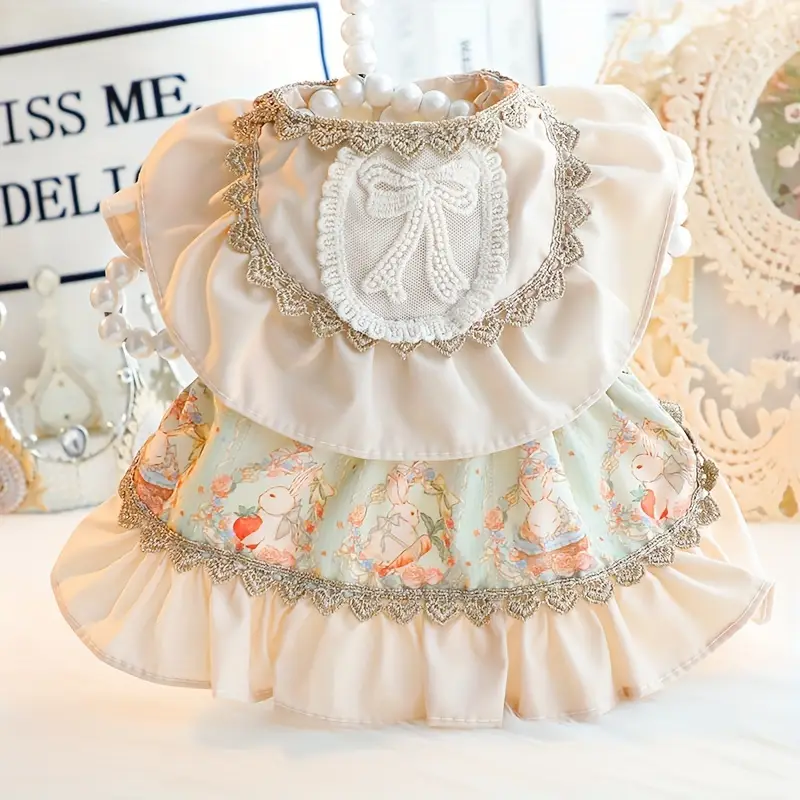Elevate your B2B pet apparel line with SUN PET luxury princess-style dog dresses. Featuring elegant beige fabric, adorable bunny prints, golden lace trim, and pearl accents, these high-couture pieces are perfect for small dogs and cats in spring/summer collections. As a leading factory, we specialize in wholesale dog dresses, OEM dog dresses, and custom dog dresses wholesale. Attract premium retailers with our convincing quality—fully customizable in sizes, colors, fabrics, prints, and trims for your brand.