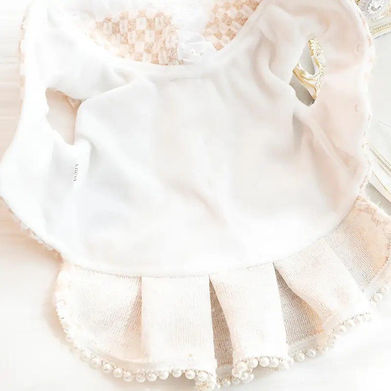 SUN PET Wholesale Beige Pearl Plaid Dog Dress – Autumn/Winter Princess Skirt, Custom & OEM Dog Dresses