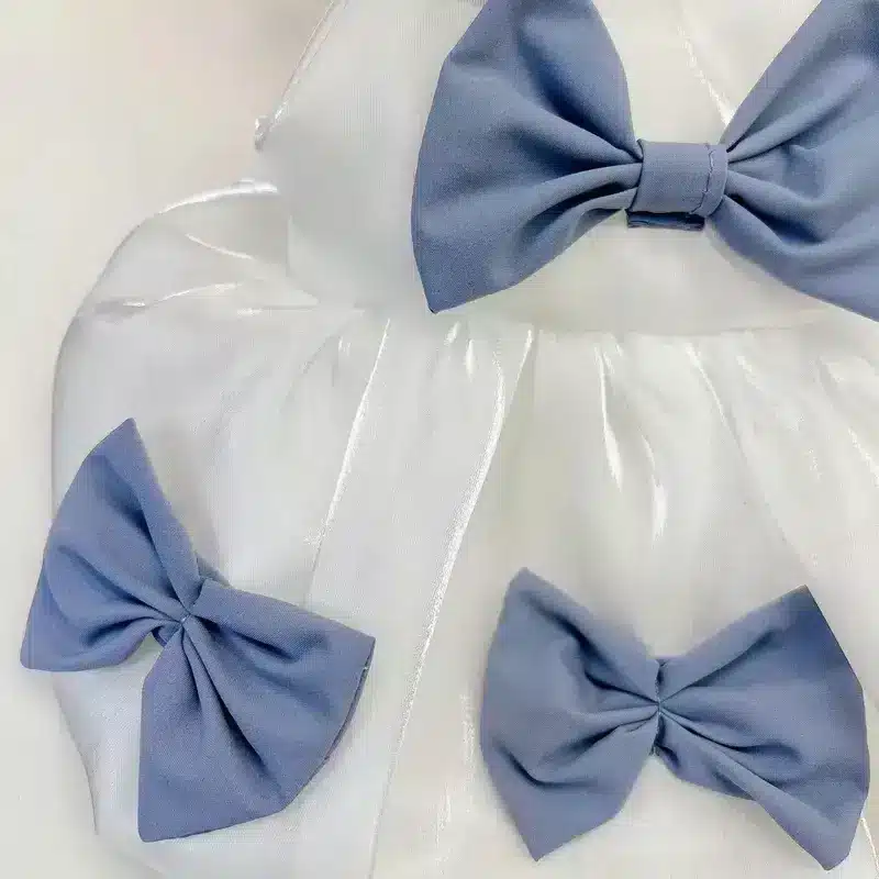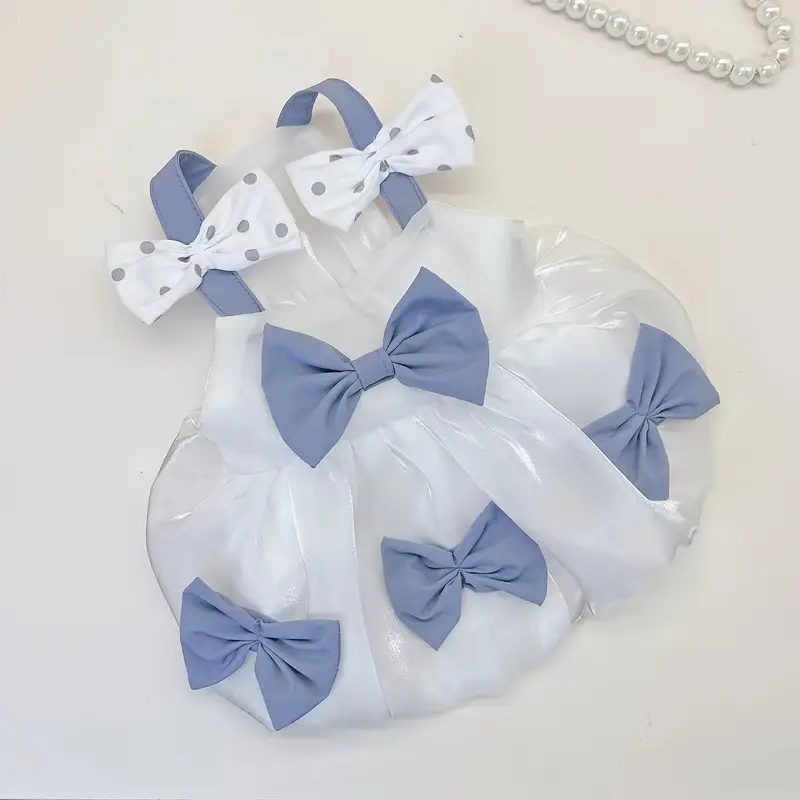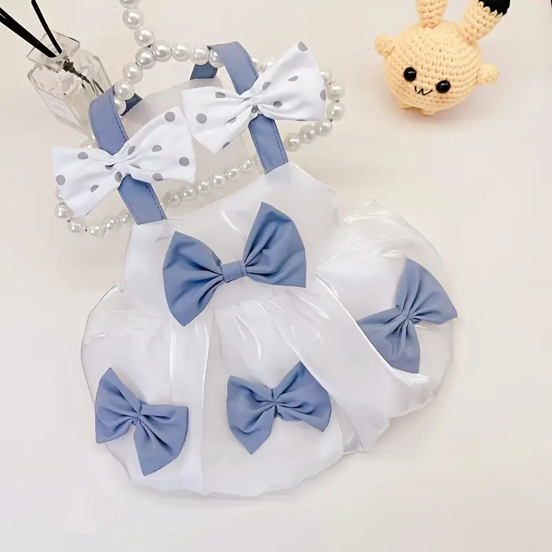 SUN PET Wholesale Blue Bows White Streamer Dog Dresses