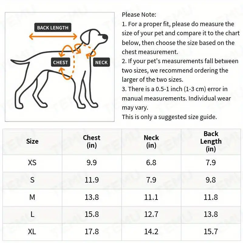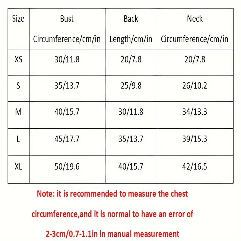 Note: Measure chest; ±2-3cm error normal.