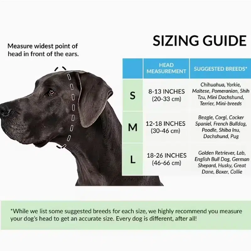 | Size | Head Measurement (Inches) | Head Measurement (cm) | Suggested Breeds |