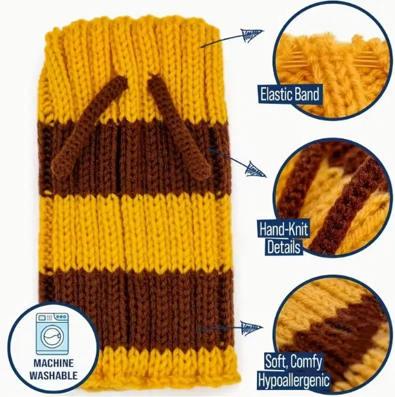 Elevate your pet accessory line with SUN PET’s whimsical Bumble Bee Pet Hat, a hand-knitted masterpiece blending playful bee antennae and striped patterns for dogs and cats. Crafted from soft, hypoallergenic yarn, this windproof knit offers all-season warmth and comfort, perfect for winter outings or festive photo ops. Ideal for wholesale pet costumes distributors seeking standout items that captivate American pet owners.