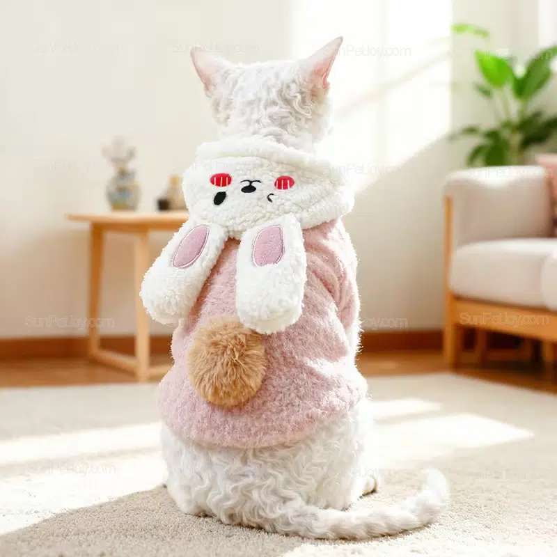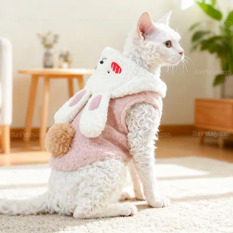 This plush bunny hood cat vest is developed for autumn and winter pet apparel lines, combining thermal comfort with a distinctive sleeveless structure.