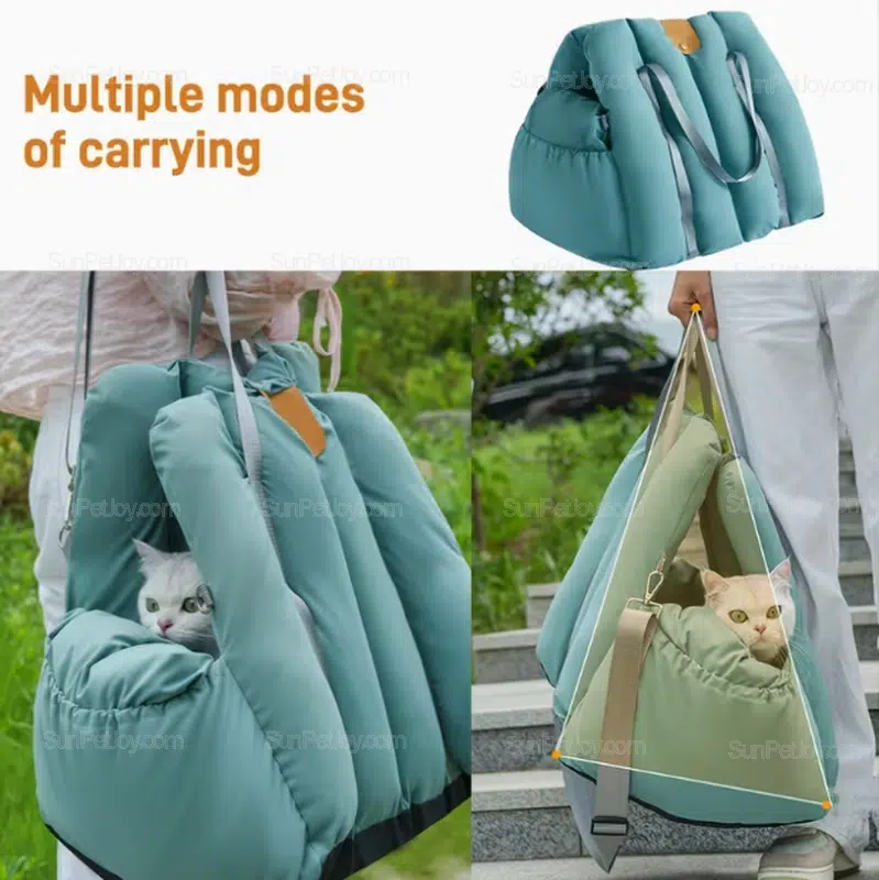 It functions as a secure cat travel bed during driving and converts easily into a soft carry-style pet bed for short trips, vet visits, and daily transport.