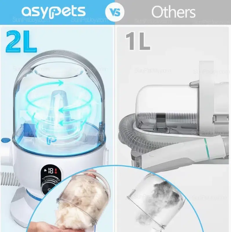- 2L transparent dust cup minimizes frequent emptying during multi-cat grooming sessions