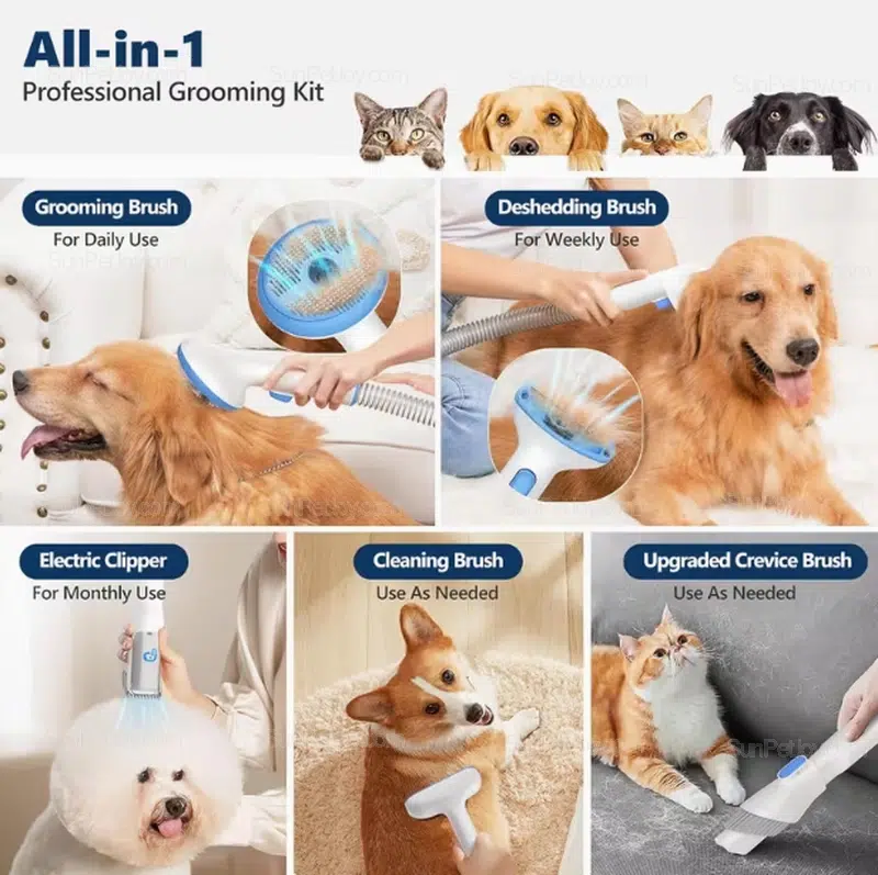 - Compatible with grooming brush, deshedding tool, clipper and crevice nozzle