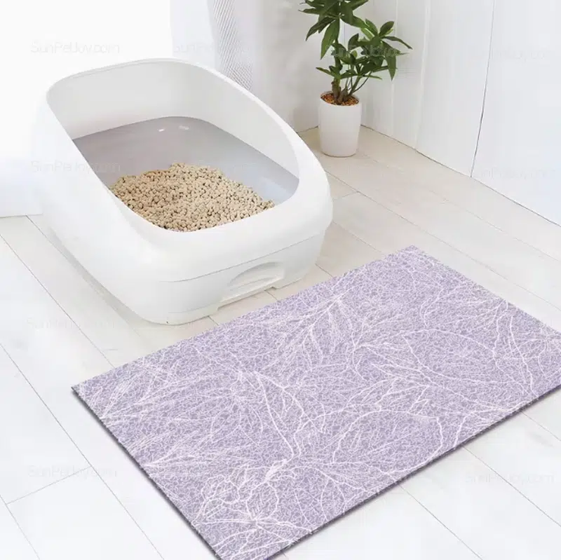 Designed for cat litter box areas, this cat litter mat uses a multi-layer PVC structure to capture scattered litter and moisture before it spreads across the floor. The surface texture guides litter into the inner layer, allowing easy shake-off or rinse cleaning, making it suitable for both residential and commercial pet environments.