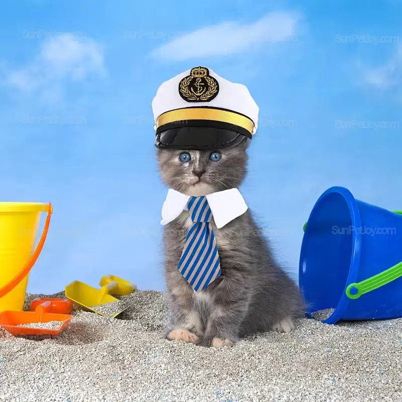 - Cat captain sailor hat with embroidered emblem