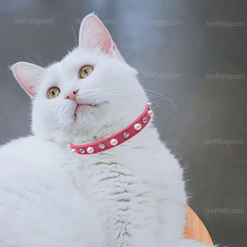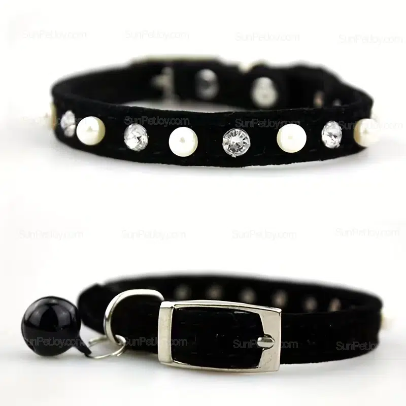 This adjustable cat collar is developed for pet brands and wholesalers seeking a refined accessory with stable quality and customization flexibility. Made with a soft velvet strap and finished with faux pearls and rhinestone accents, it delivers a balanced look suitable for both everyday wear and boutique collections.