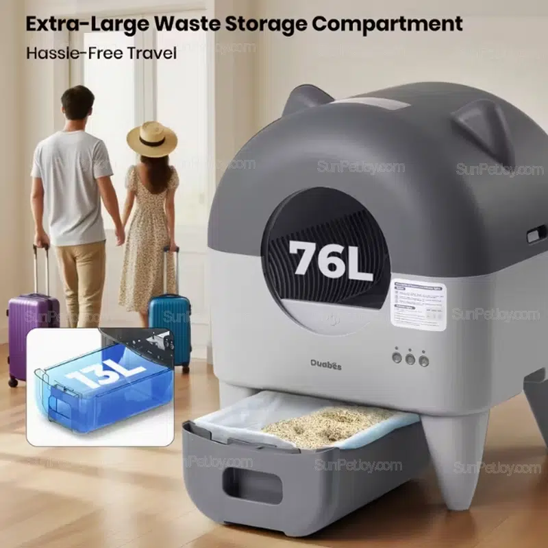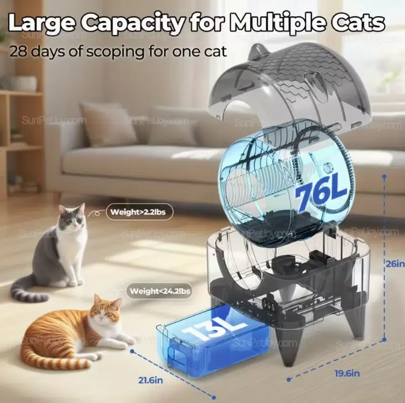 Distributors report reduced customer complaints due to lower noise levels and less frequent waste handling. Retail partners highlight the 76L capacity as a key selling point for multi-cat households and subscription refill models.
