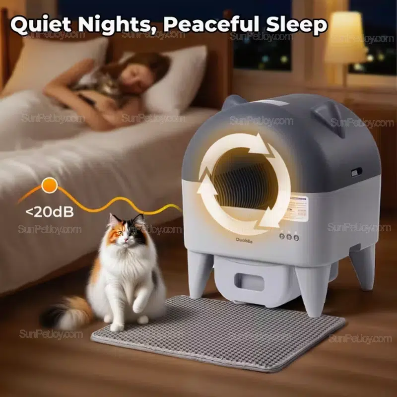 The large-capacity design reduces manual cleaning frequency, while the quiet motor system allows placement in bedrooms, apartments, and compact living spaces. This model is widely adopted by North American B2B buyers looking for reliable, scalable smart cat litter solutions.