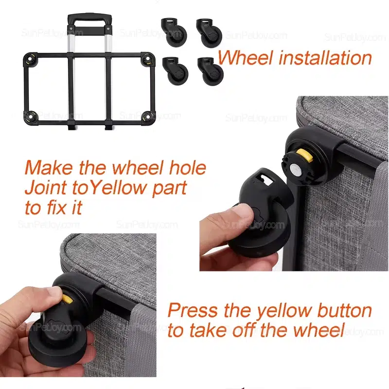 By combining a detachable trolley system, luggage handle sleeve, and foldable structure, it supports airport travel, trade shows, car transport,
