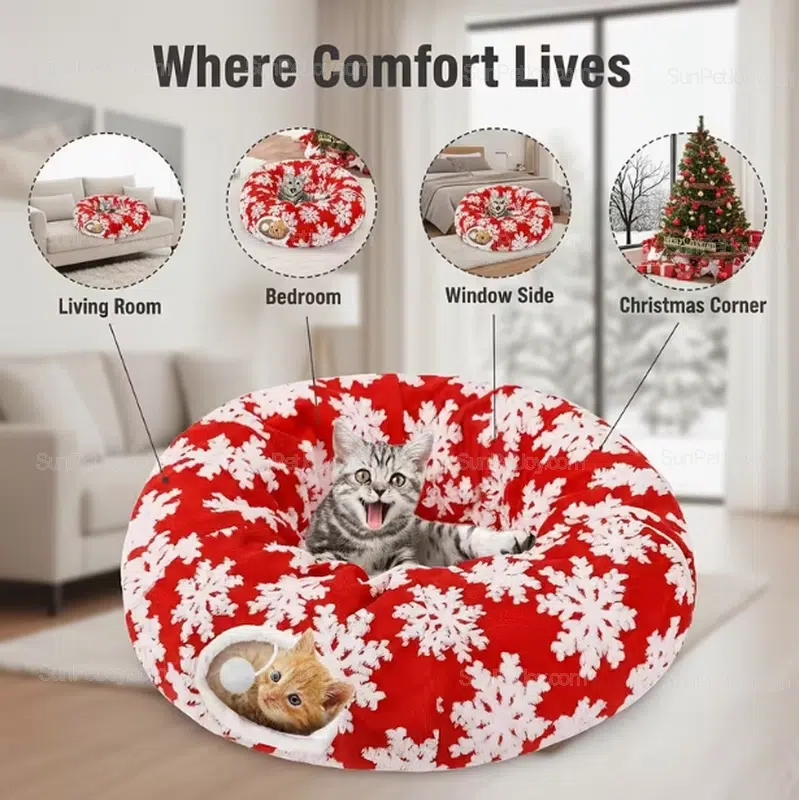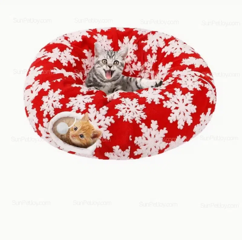 The SUNPETJOY plush cat tunnel bed is engineered for wholesale distribution and OEM customization, offering a closed resting structure that supports natural feline nesting behavior. Designed for indoor retail and seasonal product lines, this model combines durability, comfort, and structural stability for long-term use across commercial pet supply channels.