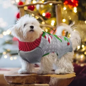 Factory-direct 100% acrylic knit pullover designed for high-margin holiday pet apparel collections.