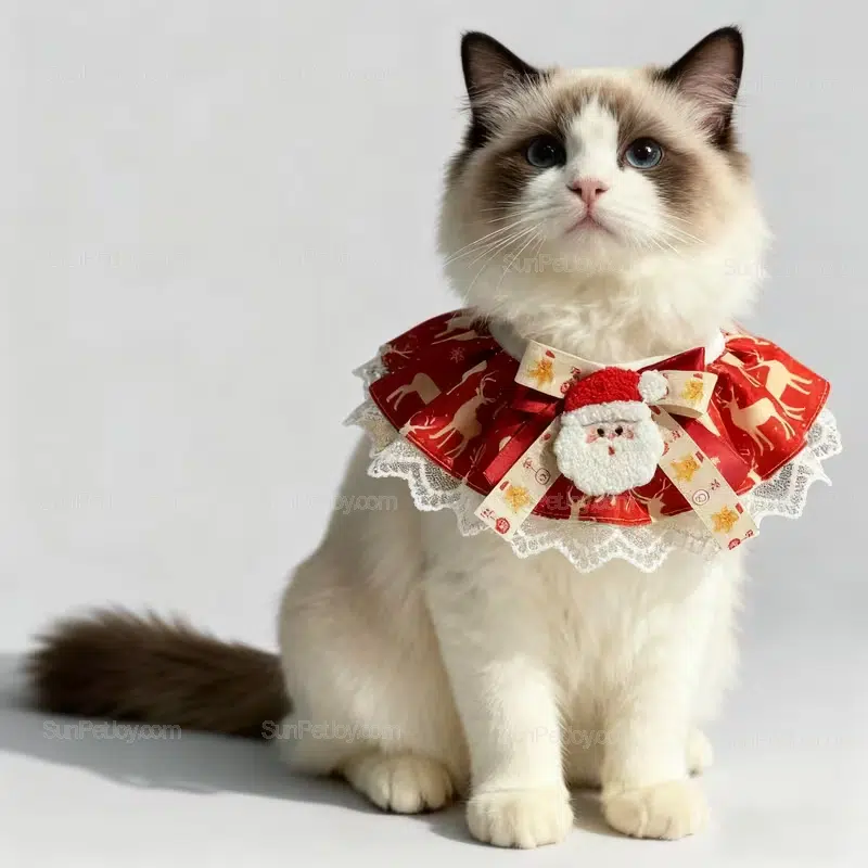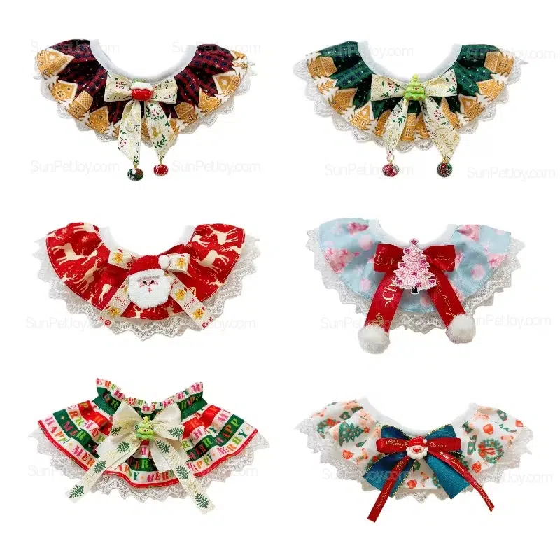 Elevate your pet supply line with our wholesale Christmas pet lace bibs, crafted from soft polyester knit fabric for festive comfort. These holiday pet accessories blend adorable designs with durable materials, ideal for retailers targeting seasonal pet fashion trends.