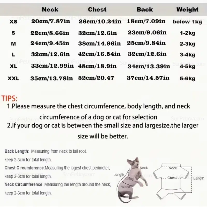| Size | Neck | Chest | Back | Weight |
