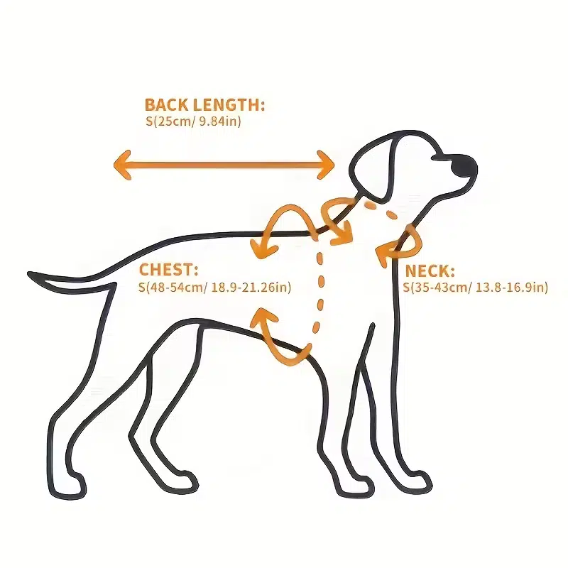 | Size | Back Length | Chest Girth | Neck Girth | Suggested Weight |