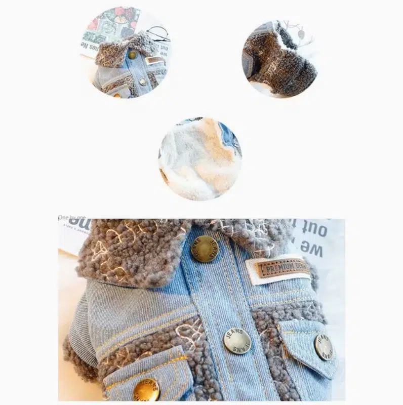 sample arrangements and OEM customization options for this sherpa-lined denim dog jacket.