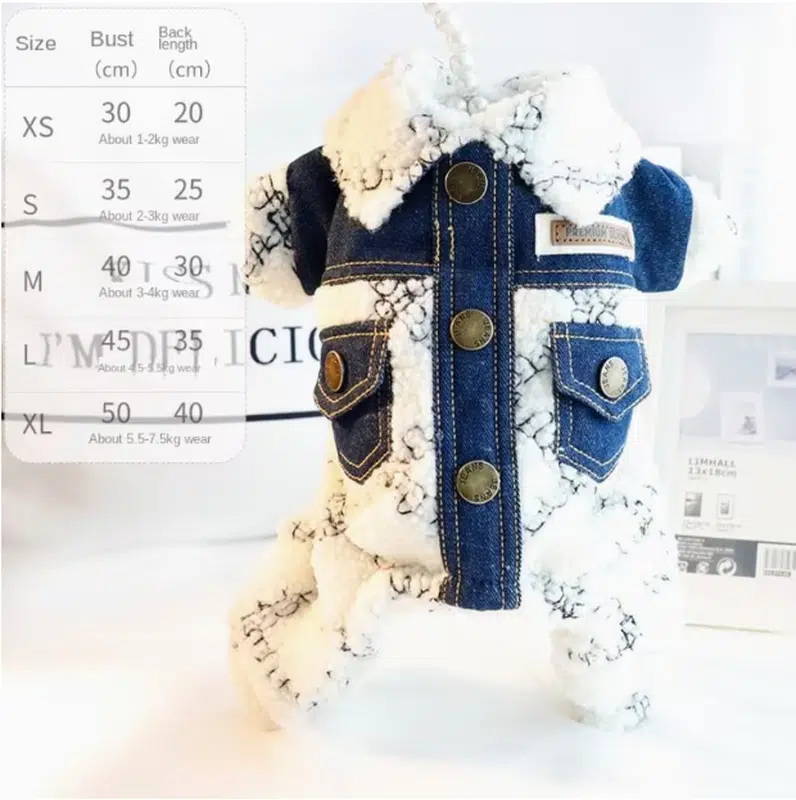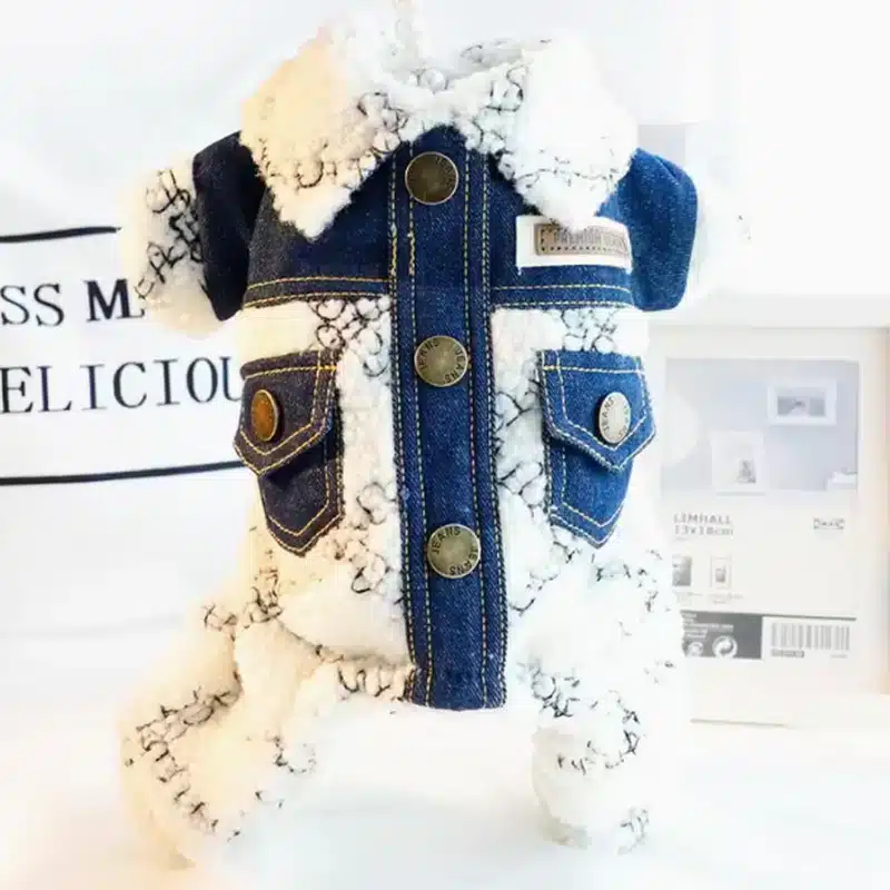 Wholesale Sherpa-Lined Denim Dog Jacket – Warm Four-Leg Design for OEM Brands
