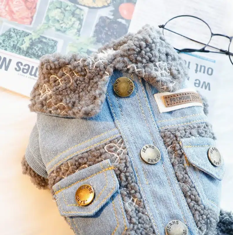 Give your winter collection a standout hero piece with this sherpa-lined denim dog jacket.