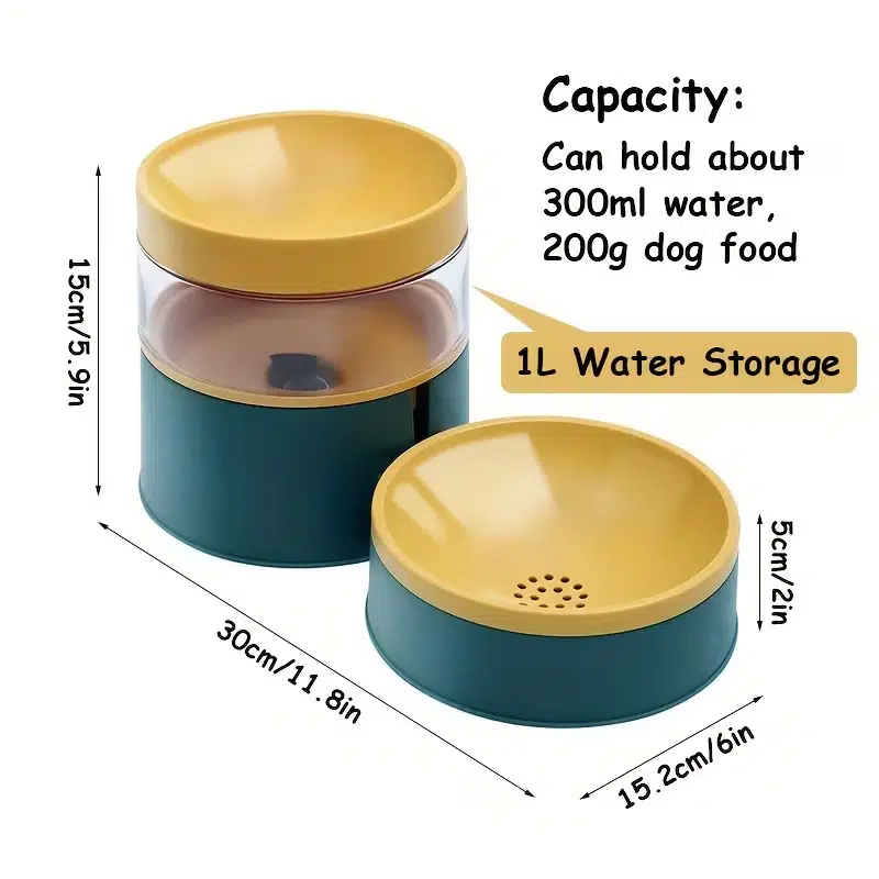 - Holds up to 200g dry food and 300ml water in bowls