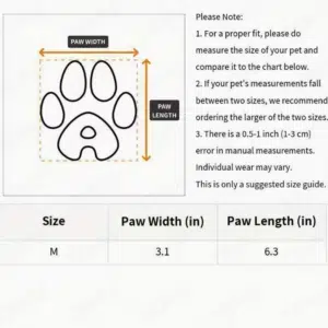 | Size | Paw Width (in) | Paw Length (in) | Notes |