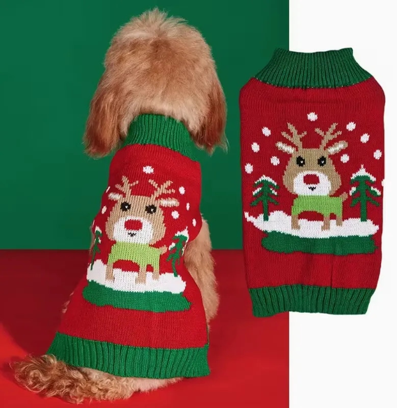 SUN PET wholesale Christmas dog sweaters are developed for high demand seasonal sales in the U.S. pet apparel market. Designed with classic holiday themes such as elk, snowflake, gingerbread, Santa, and Christmas tree patterns, these sweaters use strong seasonal colors including red, green, and white to create instant shelf appeal for holiday collections.