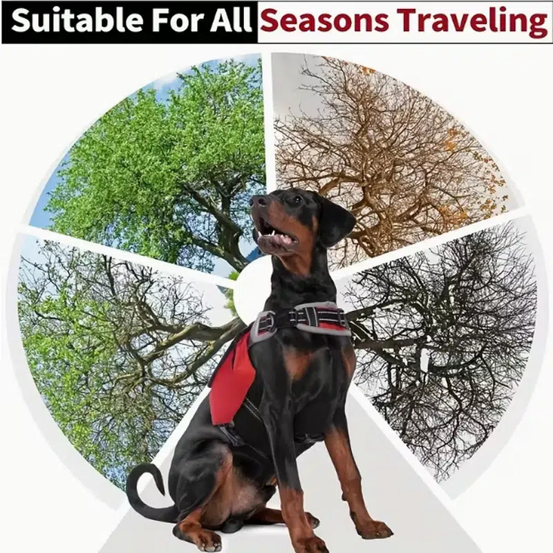 - Top control handle + front & back leash attachment points