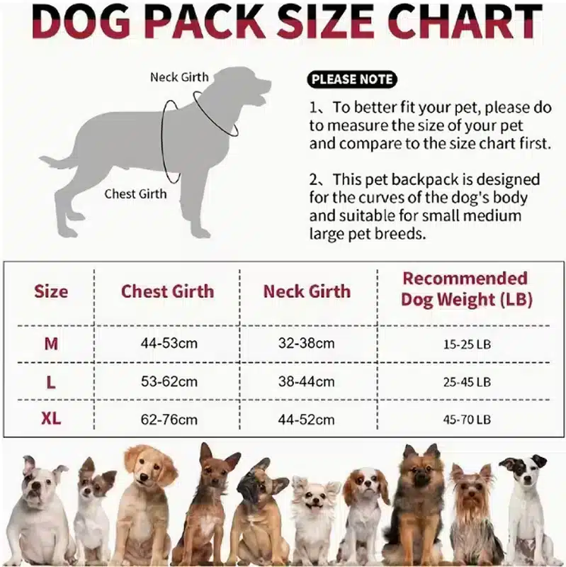 | Size | Chest Girth | Neck Girth | Recommended Weight |