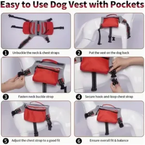 Durable nylon dog hiking vest harness with expandable side pockets for treats, water, and leashes. Ideal for trails, hunts, or daily walks with medium/large dogs up to 70lbs. Factory-direct wholesale, MOQ 100pcs. Customize colors, logos, sizes via OEM/ODM for your brand.